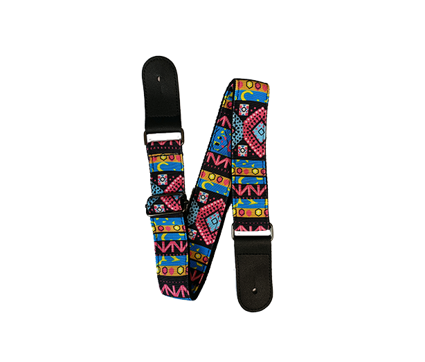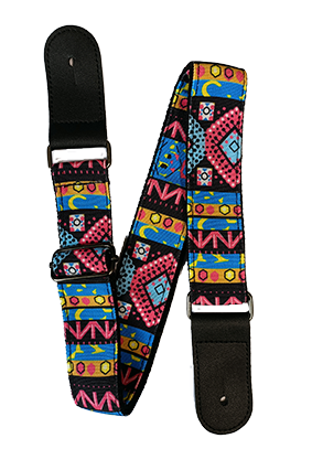 Kleur voorzijde: print met zwarte achtergrond en blauw, geel en rose vormen