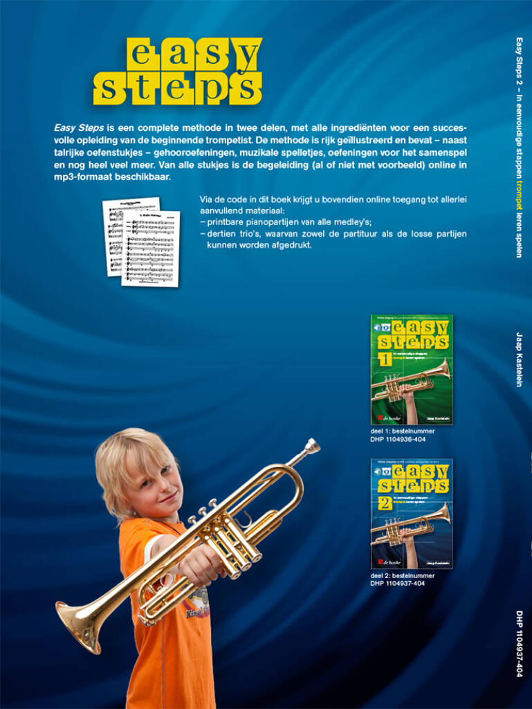 De succesvolle methode Easy Steps is een complete methode in twee delen, die alle ingrediënten bevat voor een succesvolle opleiding van de beginnende muzikant. De boeken vormen de basis. Hierin wordt alles behandeld. Hier worden de nieuwe noten en ritmes aangeleerd, met aanwijzingen hoe ze gespeeld moeten worden, en worden allerlei begrippen uit de muziek behandeld. Vooral in het begin zijn de stapjes heel klein: geleidelijkeprogressie is het motto. Zo krijgt de leerling de kans de verworven vaardigheden goed te verwerken - aan de hand van begrijpelijke uitleg, oefeningen, spelletjes en medleys van bekende liedjes. De duidelijke opzet en overzichtelijke opmaak zorgen voor extra helderheid. Begeleidingen kunnen worden gedownload.