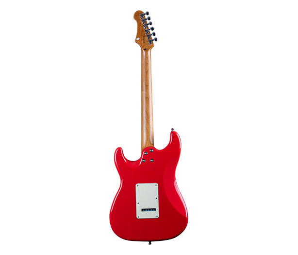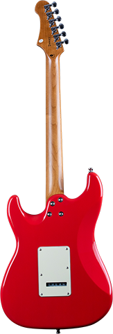 Het ontwerp en de rode kleur geven een assertief uiterlijk aan deze gitaar.