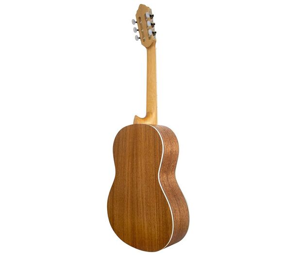 De Valencia 354 brengt een frisse uitstraling naar de wereld van klassieke gitaren. Met zijn levendige, meerkleurig bovenblad en bijpassende headstock, heeft deze 4/4 full-size gitaar een opvallende uitstraling. De witte toets, gecombineerd met de warme mahogany achterkant en zijkanten, zorgt voor een uniek contrast dat de kleuren nog meer laat spreken. Maar naast het gedurfde design is de 354 ook een solide en comfortabele gitaar voor spelers die op zoek zijn naar een betrouwbare klassieke gitaar met nét dat beetje extra karakter.