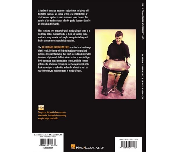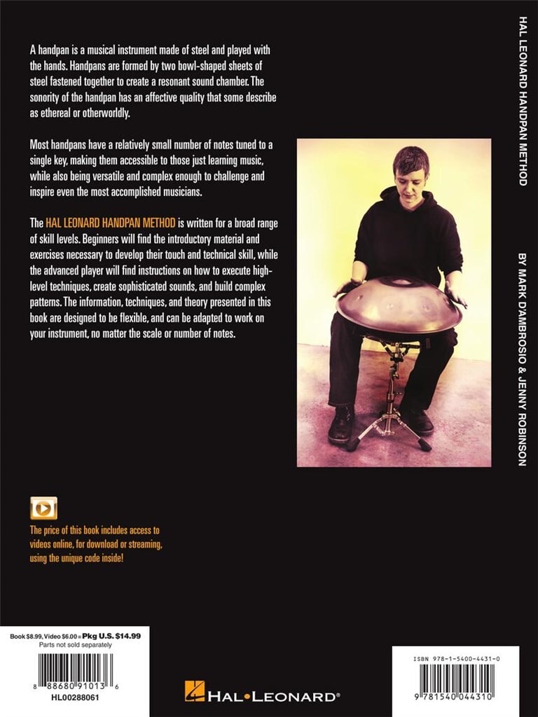 Een handpan is een muziekinstrument gemaakt van staal en bespeeld met de handen. Handpannen worden gevormd door twee komvormige stalen platen die aan elkaar zijn bevestigd om een resonerende klankkamer te creëren. De klank van de handpan heeft een affectieve kwaliteit die sommigen omschrijven als etherisch of buitenaards. De meeste handpannen hebben een relatief klein aantal noten die zijn afgestemd op een enkele toets, waardoor ze toegankelijk zijn voor mensen die net muziek leren, terwijl ze ook veelzijdig en complex genoeg zijn om zelfs de meest ervaren muzikanten uit te dagen en te inspireren. De Hal Leonard Handpan-methode is geschreven voor een breed scala aan vaardigheidsniveaus. Beginners zullen het inleidende materiaal en de oefeningen vinden die nodig zijn om hun aanraking en technische vaardigheden te ontwikkelen, terwijl de gevorderde speler instructies zal vinden over het uitvoeren van technieken op hoog niveau, het creëren van geavanceerde geluiden en het bouwen van complexe patronen. De informatie, technieken en theorie die in dit boek worden gepresenteerd, zijn ontworpen om flexibel te zijn en kunnen worden aangepast aan uw instrument, ongeacht de toonladder of het aantal noten. De prijs van dit boek is inclusief toegang tot video's online, om te downloaden of te streamen, met behulp van de unieke code die bij elke aankoop wordt meegeleverd.