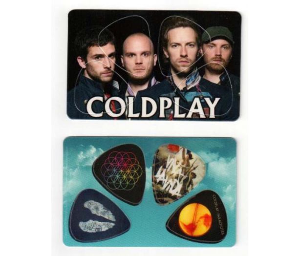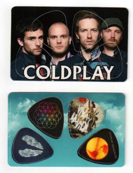 Bankpas-formaat card met 4 plectrums. De plectrums kunnen weer terug geplaatst en dat is heel handig voor in de portomonnee of gitaarkoffer! Leuke Coldplay print op beide zijden.
