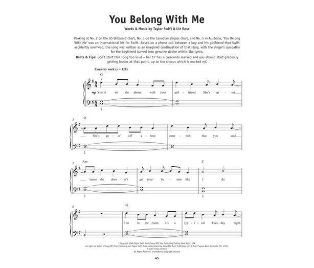 Really Easy Piano: Taylor Swift bevat bladmuziek voor 18 hits van de Amerikaanse ster Taylor Swift.