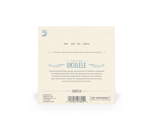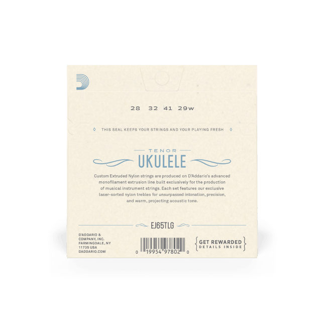 De EJ65T is een snarenset voor de tenorukulele, met een verzilverde koperen G-snaar en Pro-Arté nylon hoge snaren voor de C-, E- en A-snaar, geschikt voor een lage G-stemming. Pro-Arté Custom Extruded Nylon zet de standaard voor ukuleleklank, intonatie en dynamische respons.