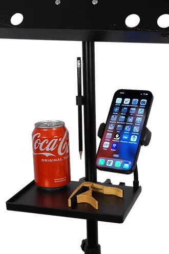 Daarnaast is er natuurlijk ruimte voor een blikje drinken, de capo, de tuner, plectrums etc.