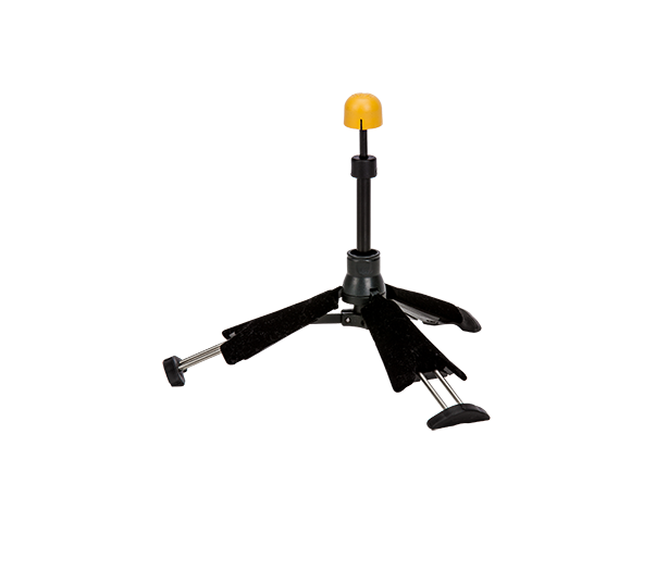 - Dankzij het compacte ontwerp kan de standaard veilig in de beker van het instrument worden opgeborgen, zonder ruimte in de instrumentkoffer.