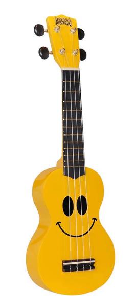 Don't worry, be happy! Deze leuke gele Mahalo sopraan ukelele heeft gitaarmechanieken en nubone brugzadel. Daar moet je wel vrolijk van worden!